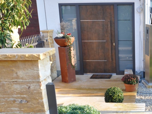 Licht, Bepflanzung, Vorgarten und Hauszufahrten erarbeiten.