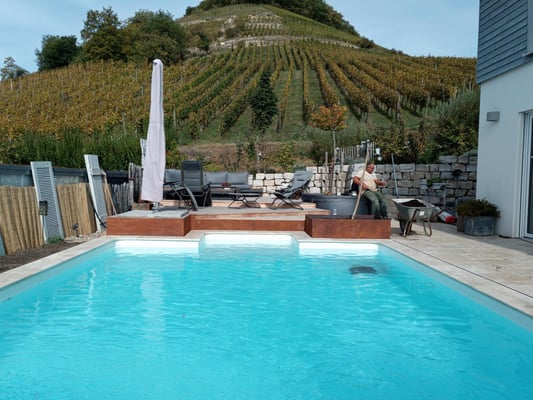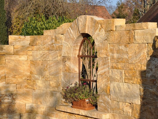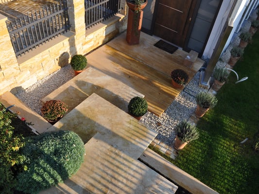 Steine verleihen Ihrem Außenbereich Struktur und schaffen gemütliche Nischen, während sie gleichzeitig als praktischer Sichtschutz dienen können. Holz bringt eine warme Atmosphäre in dein