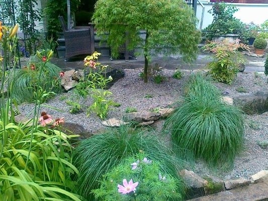Dazu zählen neben dekorativen Elementen wie Wasser, Steine oder Holz auch verschiedene Pflanzen wie Stauden, Bäume und Gräser.